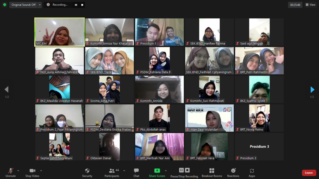 Para peserta rapat, yang tersebar di berbagai lokasi, menunjukkan antusiasme tinggi melalui kehadiran dan partisipasi aktif dalam sesi diskusi. Suasana pertemuan virtual terasa hidup meskipun dilakukan secara daring, mencerminkan semangat kolaboratif serta komitmen bersama untuk membawa himpunan ke arah yang lebih baik.