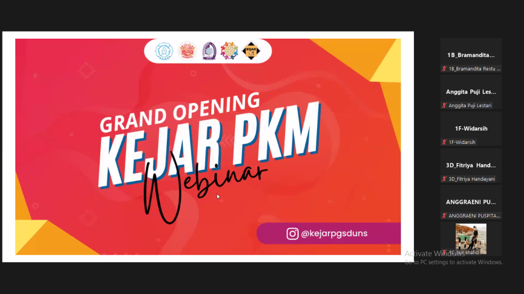 Surakarta, 3 Desember 2022 โ Himpunan Mahasiswa PGSD Universitas Sebelas Maret (HIMA PGSD UNS) kembali menyelenggarakan kegiatan Kelas Belajar yang kali ini mengangkat topik seputar Program Kreativitas Mahasiswa (PKM). Kegiatan ini dilaksanakan secara daring melalui Zoom Meeting, dan diikuti oleh mahasiswa PGSD dari berbagai angkatan sebagai bagian dari rangkaian penguatan kapasitas dan pengembangan diri.